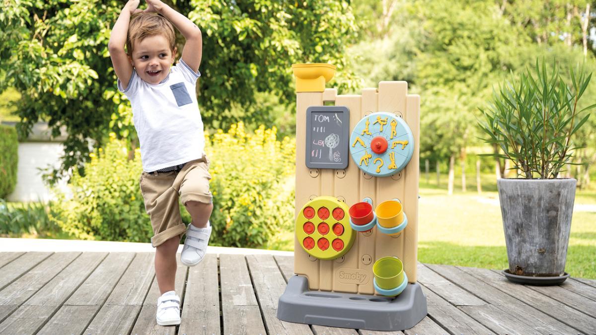 - Lernspielzeuge für draußen: Lernspielzeuge, wie die Smoby Activity Wall fördern die kognitive und motorische Entwicklung gleichzeitig auf spielerische Weise. Durch interaktive Elemente wie Steckspiele, Farben und Zahlen wird das Erlernen von Geschicklichkeit zum Kinderspiel. Zudem schult die Activity Wall die Hand-Auge-Koordination und die Fähigkeit zum Problemlösen. Unterhaltung mit Bildung.