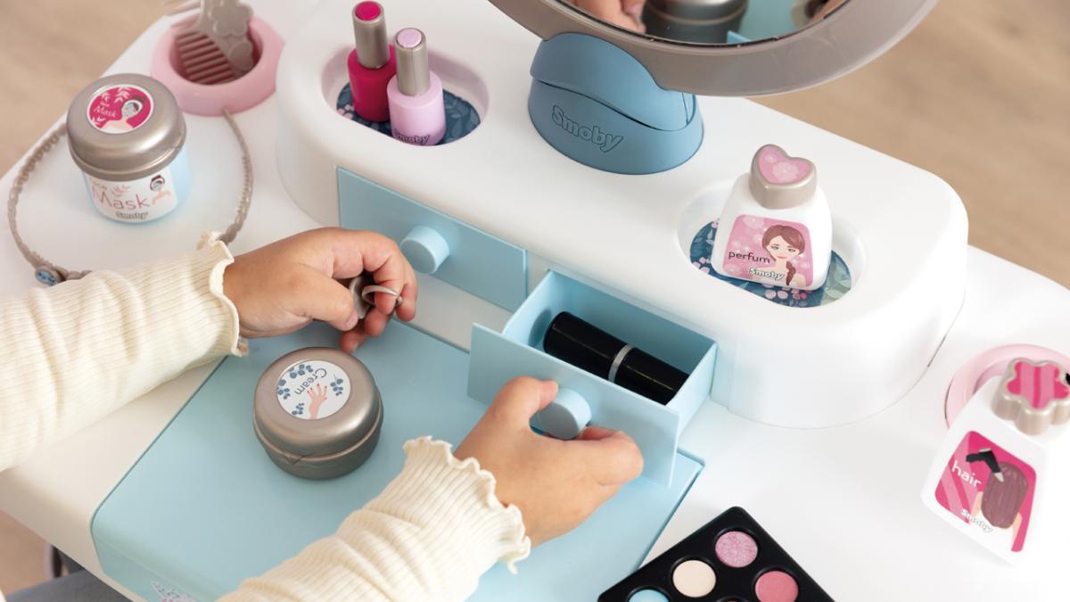 The make-up tables and accessories from Smoby offer your child a wonderful platform for creative role play and support their development in a variety of ways. By slipping into the role of adults who put on make-up and style themselves, your child not only expands their imagination and creativity, but also develops their fine motor skills and their understanding of aesthetics. These playful experiences give them self-confidence and a positive self-image. Doing their hair, painting their nails and admiring themselves in the mirror: The My Beauty play make-up table makes it possible! This transforms young children into great stylists.
