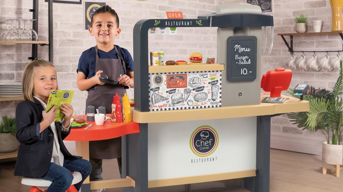 Parallel role play motivates children to expand their language skillsAfter all, role play usually involves talking to each other. By slipping into other roles, your child may use words that they don't use much or at all in everyday life, thereby expanding their vocabulary. For example, you can start a great role-playing game for children that promotes language skills with the Smoby Restaurant Chef Corner play kitchen. Your child can be a chef and waiter in one. It takes your order, answers questions about the dishes, prepares the food and, of course, wishes you a good appetite.