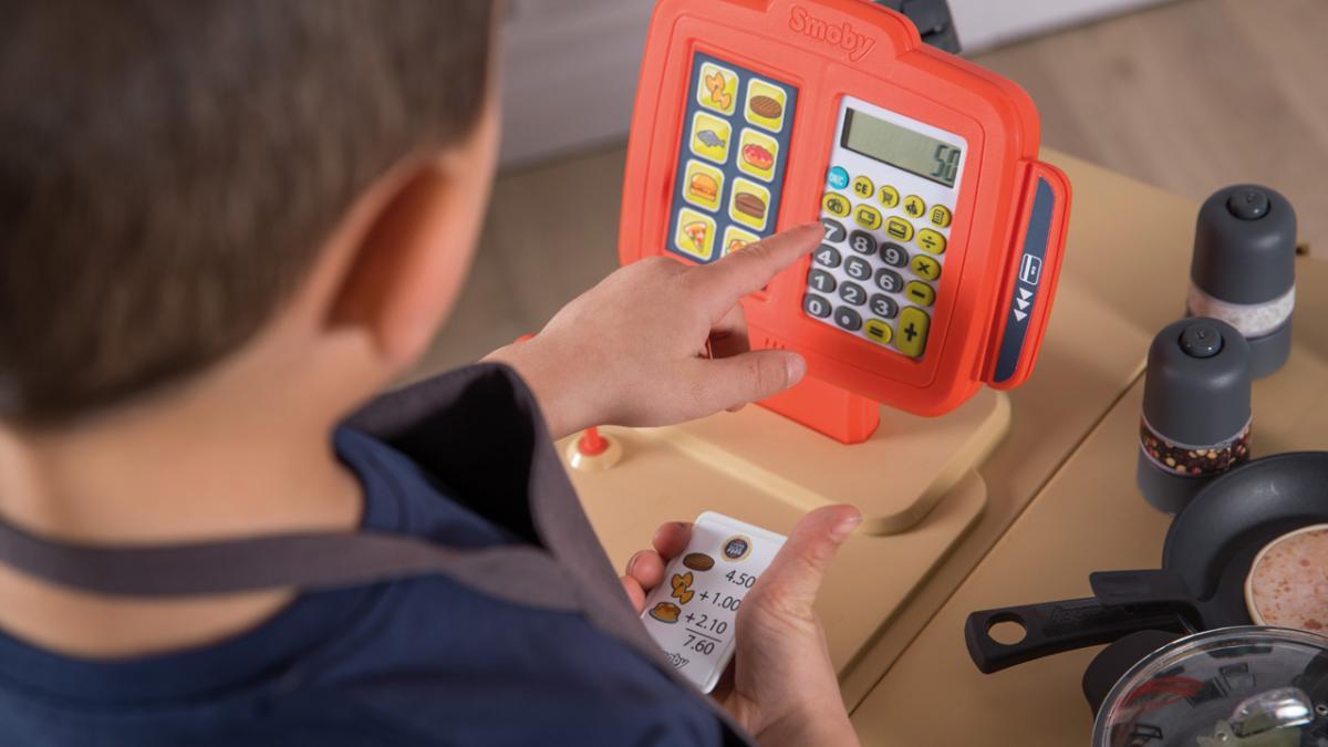 This classic form of role play for kindergarten and primary school children can be expanded to include another component: shopping. With Smoby role-play toys from the shop & accessories category, your child can take over the checkout and practice arithmetic in the role of cashier.