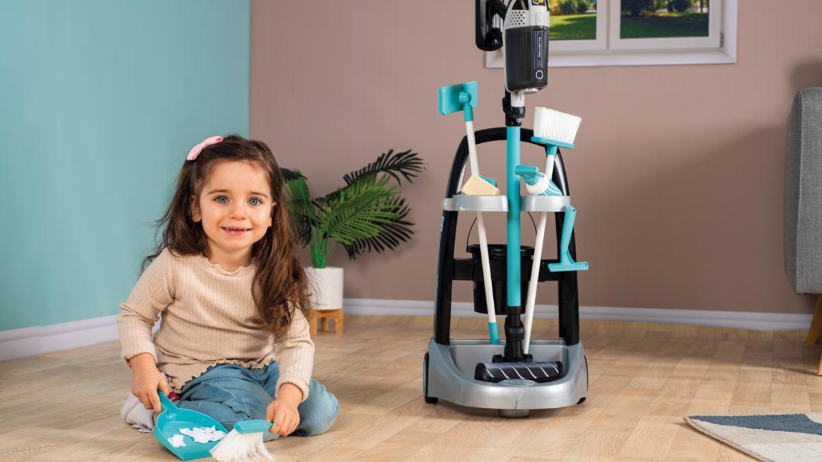 When cleaning with the cleaning trolley, vacuuming with the Rowenta Air Force vacuum cleaner or sweeping with the Smoby cleaning set, children can put their dexterity to the test and playfully get to grips with taking on household chores.
