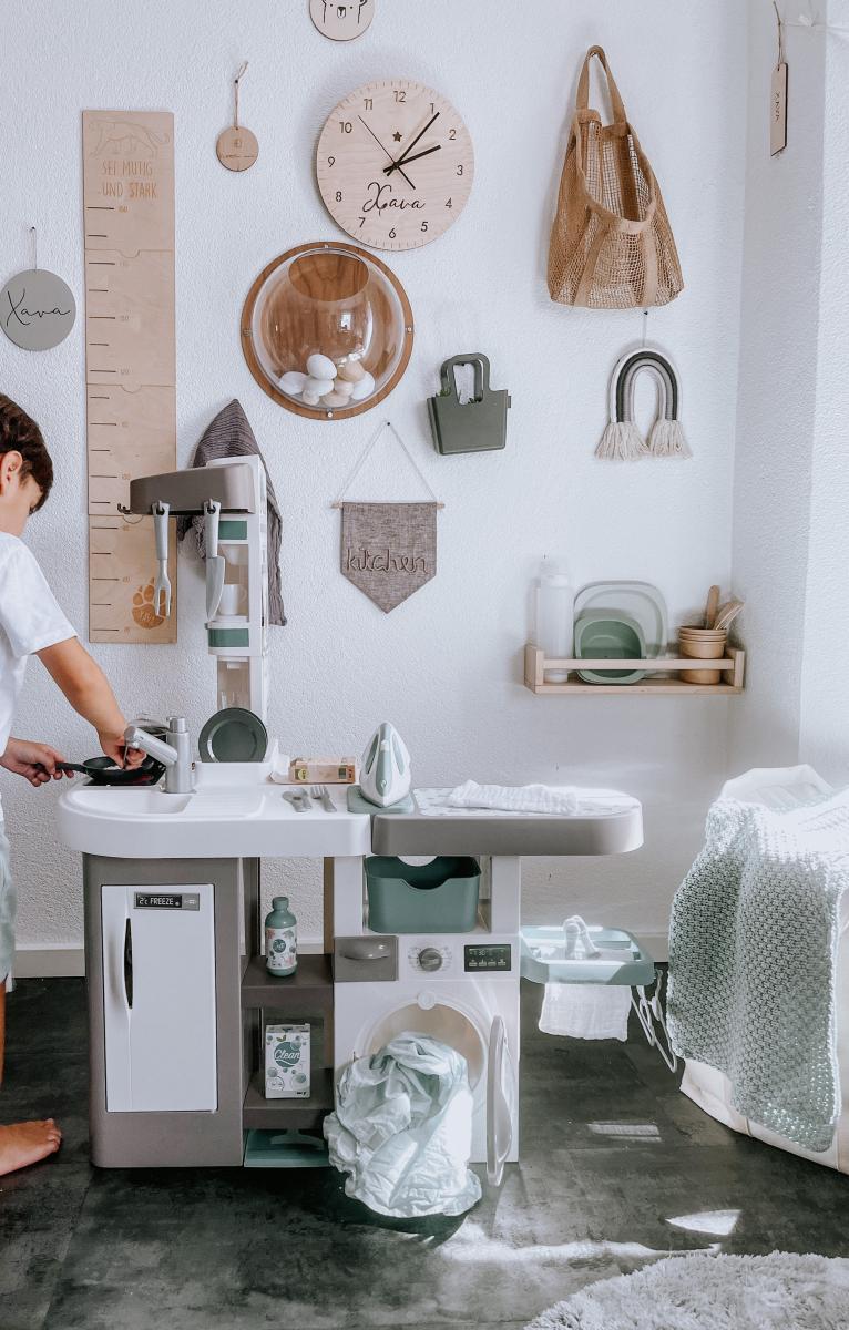 Une des cuisines pour enfants, qui fait le bonheur de chaque enfant, est proposée par le fabricant Smoby. La cuisine pour enfants "Cuisine Tefal Studio" avec laverie intégrée offre de nombreuses innovations et extras. Contrairement aux cuisines de jeu traditionnelles, ce modèle est presque un ménage à part entière. De nombreux accessoires de cuisine pour enfants sont inclus et permettent aux enfants de jouer avec beaucoup d'imagination. Des plaques de cuisson électroniques, qui peuvent être allumées et éteintes séparément, sont bien sûr disponibles.