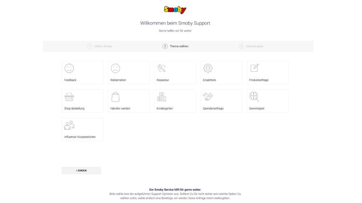 Sur le portail de service Smoby, vous trouverez des réponses à toutes les questions concernant vos produits Smoby. Qu'il s'agisse de commandes de pièces de rechange, de réparations, de réclamations ou de questions sur les produits , vous obtiendrez ici une assistance complète.
